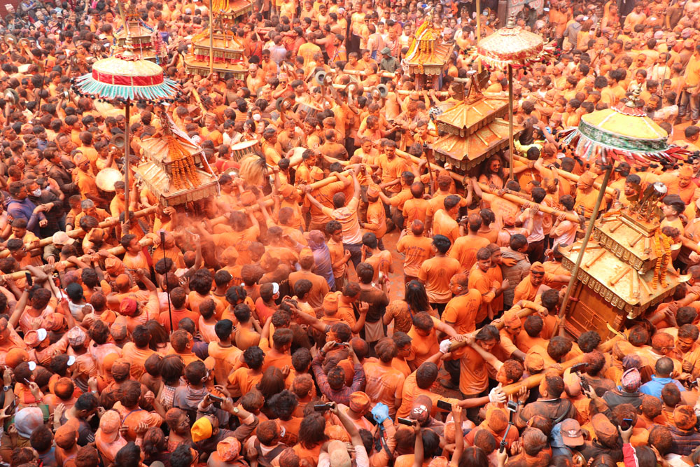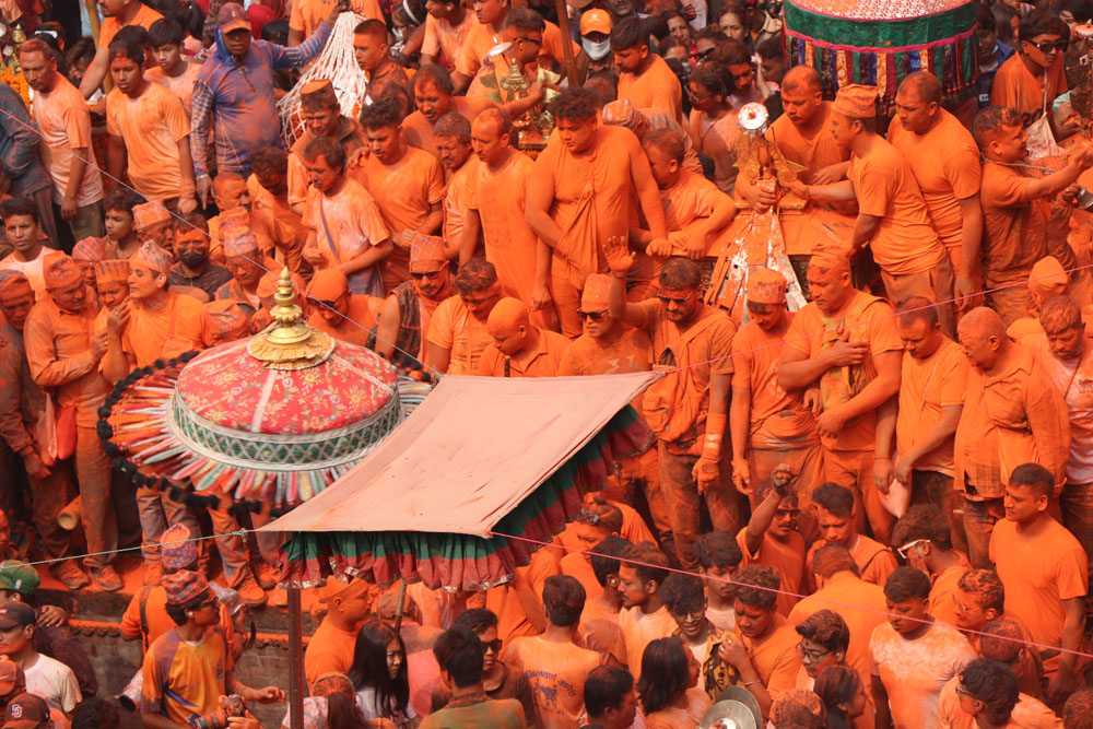 जात्रा प्रत्येक चोक, चौबाटो, घर र टोलमा पुग्दा घरका झ्याल, कौसी र छतबाट सिन्दुर छर्ने, फूल बर्साएर स्वागत गर्ने प्रचलन रहेको छ । जात्रामा काँया बाजा, भुस्या बाजा, धिमेबाजा बजाएर देवताका खटलाई घुमाउदै एक अर्कालाई सिन्दुर दल्ने, आपसमा सिन्दुर खेली स्थानिय जात्रालुहरु रमाईलो गर्ने भएकाले पनि यसलाई केहीवर्ष यता सिन्दुर जात्रा पनि भन्न थालिएको छ ।