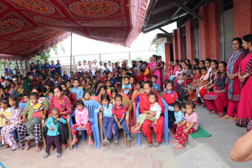 स्कुल प्राङ्गनमा भेला भएका पाँच वर्षका रियाक्सन सुनुवार, चार वर्षकी आर्या मिजार, सिजन बराललगायत ३ देखि ७ वर्षका गरिब परिवारका बालबालिका र अभिभावकहरु हातमा झोला समाउँदा उनीहरुको मुहार निकै हसिलो एवं खुसीले भरिएको देखिन्थ्यो ।