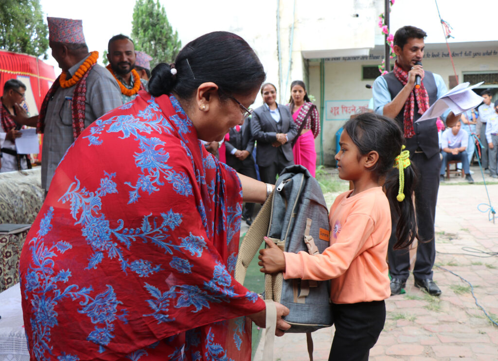 भक्तपुर, २६ जेठ : चारवर्षकी करुणा मिजार विद्यालय पोशाक, जुत्ता, किताब हाल्ने कपडाको झोला र कापीकलम सहितको ब्याग समाउदै मख्ख परिन् । सूर्यविनायक नगरपालिका–८ सिपाडोलस्थित गणेश माध्यमिक विद्यालयमा आज भेला भएका सयौँ गरिब परिवारका बालबालिका तथा अभिभावक आशाले भरिएको देखिन्थ्यो ।
