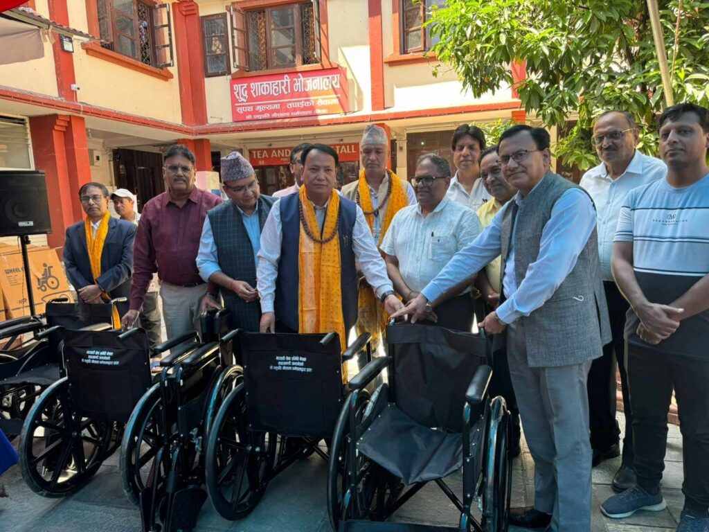 बागमती प्रदेश सरकार स्वास्थ्य मन्त्रालय, सामाजिक बिकास मन्त्रालय, मारवाडी सेवा समिति नेपाल र पशुपति गौशाला धर्मशालाद्वारा संयुक्त रुपमा यहाँ आयोजना गरेको ह्वील चियर बितरण कार्यक्रममा मन्त्री थापाले निःशुल्क कृतिम खुट्टा एवं ह्विल चेयर वितरण गर्नुभएको हो ।