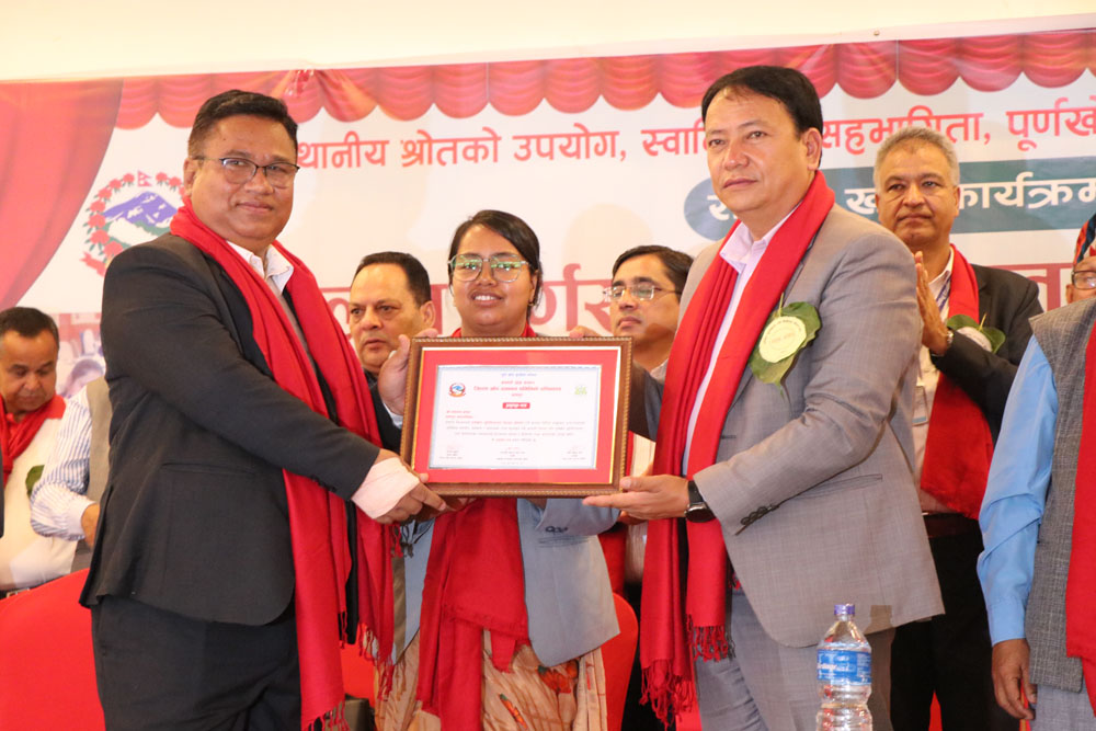 कार्यक्रममा चारवटा नगरपालिकाका र खोप सुनिश्चित घोषणामा सहयोग पुर्ुयाउने निकायलाई सम्मान गर्नुका साथै महिला स्वयंसेविकाहरुलाई मन्त्री थापाले सम्मान गर्नुभयो । कार्यक्रमका सभापति, जिल्ला खोप समन्वय समितिका संयोजक एवं जिल्ला समन्वय समितिका प्रमुख ईश्वर थापाले खोप सुनिश्चितालाई दिगो बनाएर लैजान सबै निकाय जिम्मेवार भएर लाग्नु पर्ने बताउनुभयो ।
