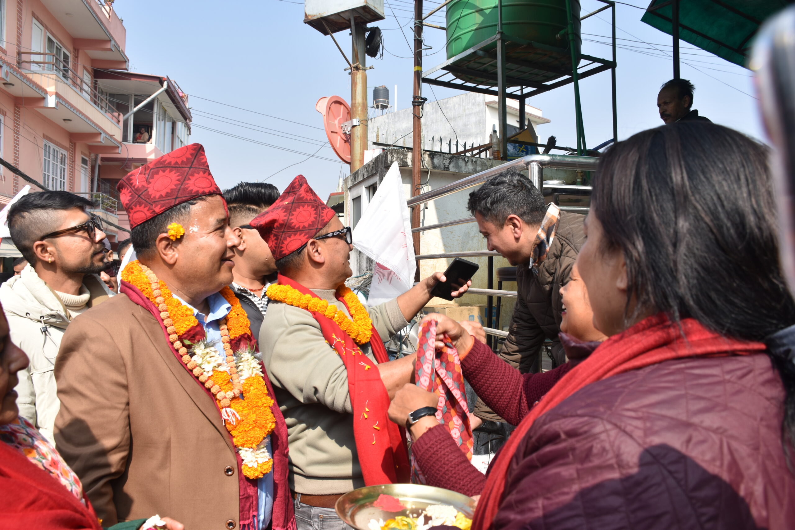 नेकपा एमाले भक्तपुर क्षेत्र नं. २ का उम्मेदवार एवं एमाले केन्द्रीय सचिव महेश बस्नेतलाई अत्याधिक मतले विजयी गराउने लक्ष्यका साथ बुधबार एमाले प्रवेश गरि महेश बस्नेतलाई मत माग्ने अभियानमा जुटेका हुन् ।