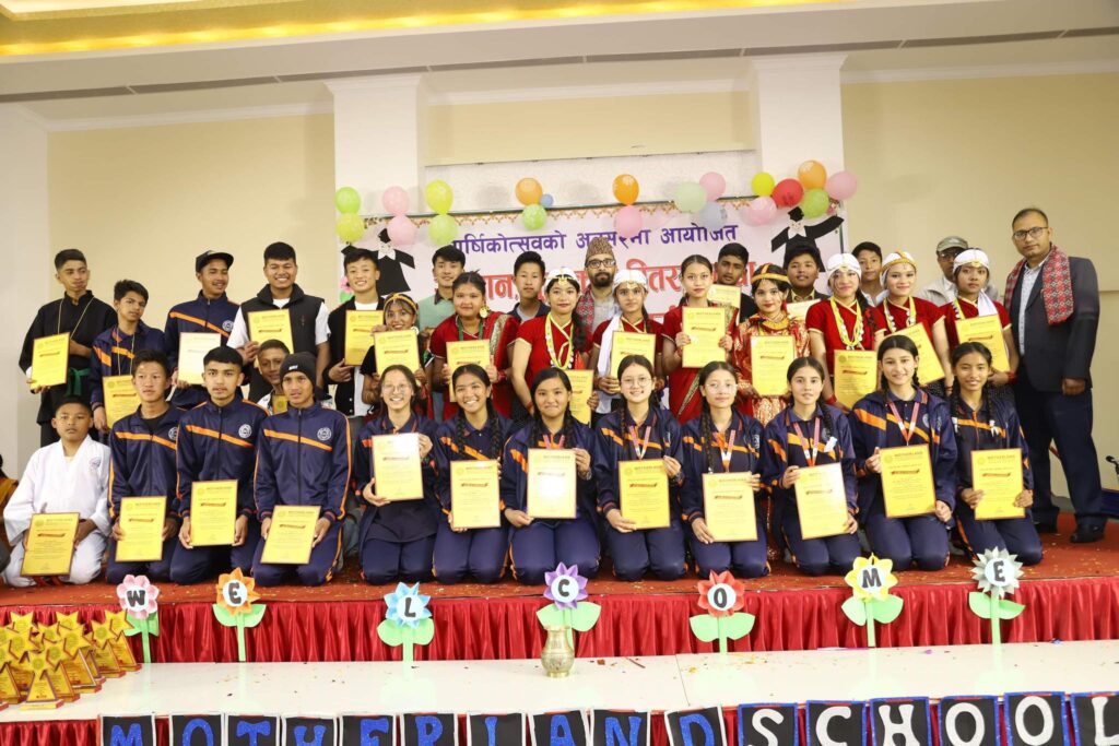 भक्तपुर । राष्ट्रिय तथा अन्तर्राष्ट्रिय पदक पाउन सफल र भक्तपुरको एक अब्बल विद्यालयको रुपको चिनाउन सफल मदरल्याण्ड स्कुलले आफ्नो वार्षिकोत्सवको अवसरमा विद्यार्थी सम्मान एवं प्रतिभा प्रस्तुतीकरण कार्यक्रम करिब ६७८ अभिभावकहरुको उपस्थितिमा चैत्र २५ गते भव्यताका साथ सम्पन्न गरेको छ ।